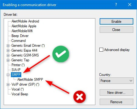 During the ALERT installation process, please select the SMPP driver from the list below (in most versions, it is selected by default).