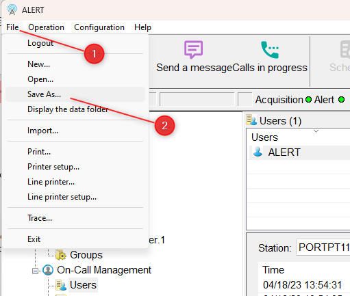 You need first to be logged in the Alert software with a system user (Profile of the "Alert" user).