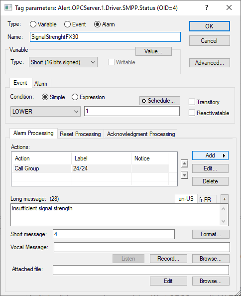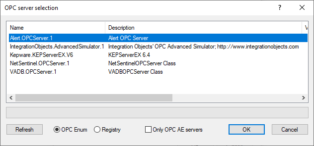 Select Alert.OPCServer.1 then click on "OK" until you return on the Alert interface: