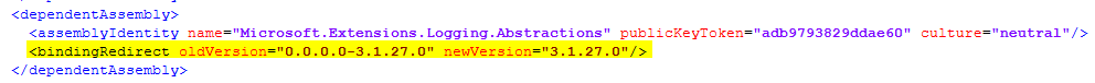 <bindingRedirect oldVersion="0.0.0.0-3.1.27.0" newVersion="3.1.27.0"/>