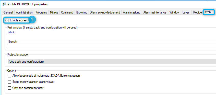 Authentification (3) : indiquer le login et mot de passe pour se connecter sur le web service de PCVUE. Cet utilisateur doit exister dans PCVUE. Sinon il faut le créer avec un profil qui a le droit d'accéder au Web (1).