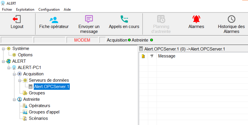 1.1 Connexion au serveur OPC d'Alert