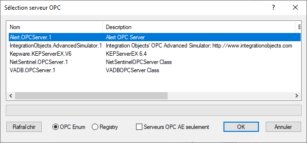Sélectionner Alert.OPCServer.1 puis cliquer sur "OK" jusqu'à retourner sur l'interface d'Alert :