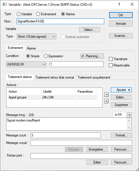 Le driver SMPP doit être configuré et connecté au FX30 pour fonctionner. Pour vous aidez à le configurer, référencez vous à notre FAQ Mise en service d'un modem FX30 avec ALERT.
