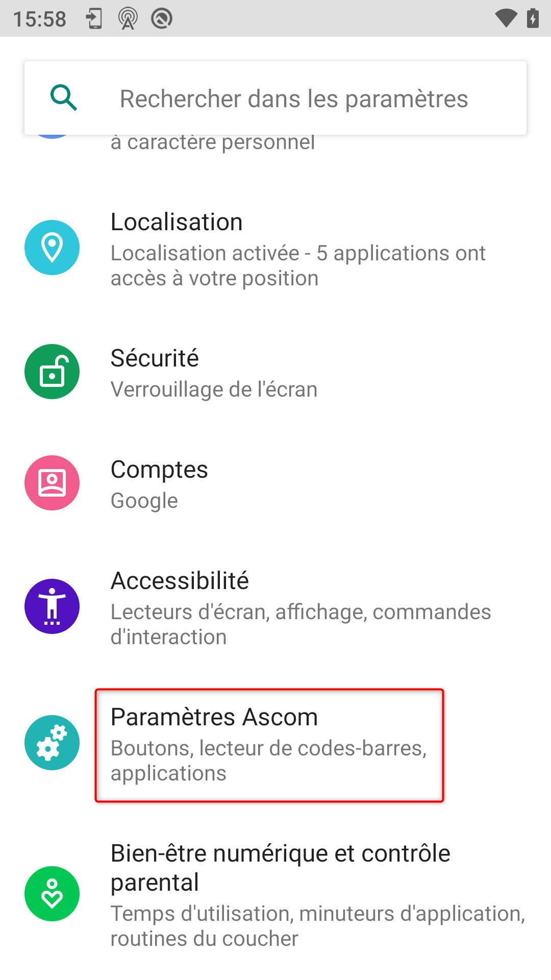 Afin de pouvoir déclencher les alarmes depuis le téléphones Ascom, il faut aller dans les paramètres du téléphone puis dans "Paramètres Ascom" :