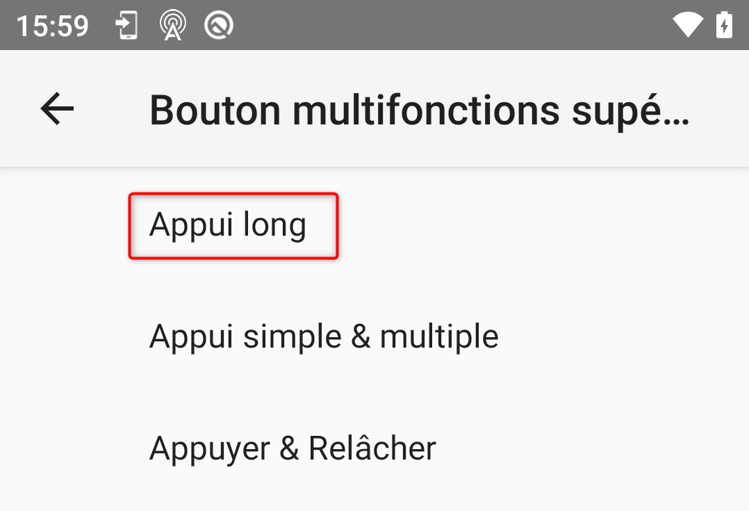 Puis sur "Appui long" :